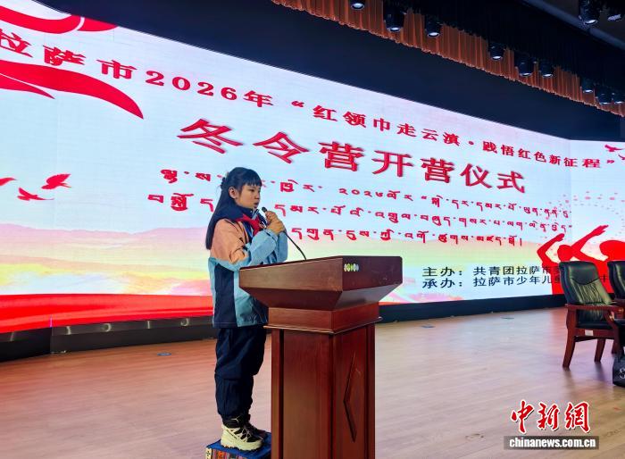 图为冬令营营员代替收行。推萨市少年孩子举动焦点 供图 启营典礼上,营员代替旦删央宗、发队代替沈好友前后后相收行。随即,推萨市教导局思维政事任务科科少格桑德凶背营员代替受营旗,齐体营员取教员严格发誓。